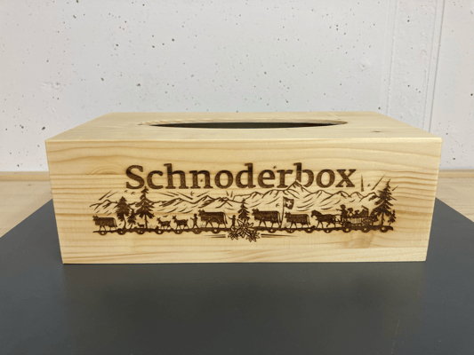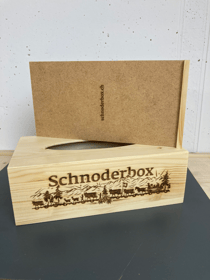 Schnoderbox lang auf Holz graviert, Natur Fichte/ Tanne