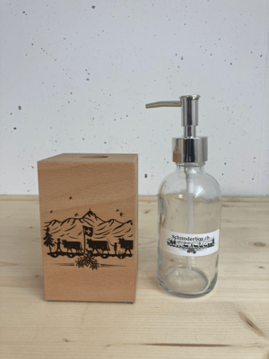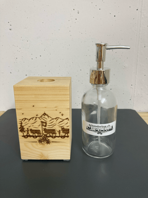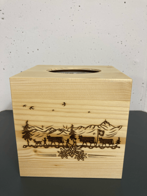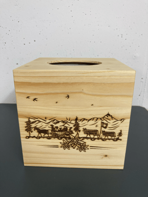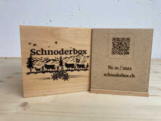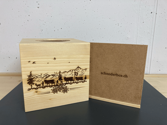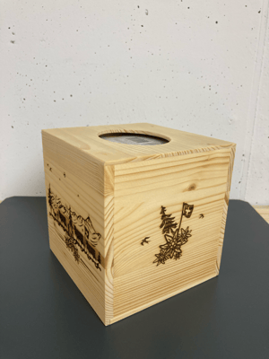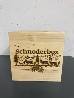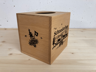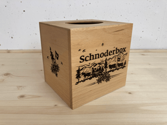 Schnoderbox Würfel auf Holz graviert, Natur Fichte/ Tanne