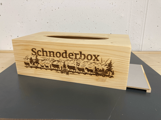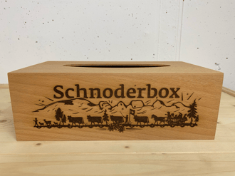 Schnoderbox lang auf Holz graviert, Buchenholz
