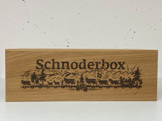 Schnoderbox lang auf Holz graviert, Eichenholz